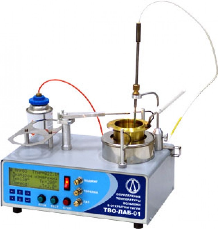 ТВО-ЛАБ-01 — устройство, работающее по методу  Клитвленда по стандартам ISO 2592,  ASTM D 92 и  ГОСТ 4333. Определяет температуру вспышки при открытом тигле. Прибор благодаря современному программному обеспечению очень прост в использовании. Оповещает звуковым сигналом лаборанта о прохождении вещества над тиглем, подавая при этом на экран информацию о температуре, зафиксировать которую можно нажатием кнопки стоп на экране.