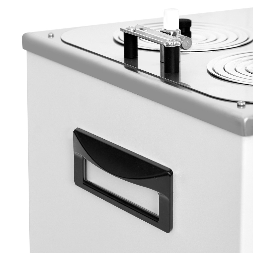• Система из 5‑ти стальных концентрических колец позволяет уплотнять размещенные в ванне колбы, стаканы и другую лабораторную посуду.