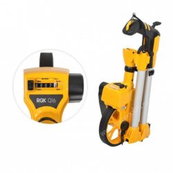 Дорожное колесо RGK Q16 диаметром 160 мм и измеряет расстояния там, где невозможно или нецелесообразно применять мерные ленты или лазерные дальномеры, например, при разметке дорожного полотна или фиксировании параметров при ДТП. Прибор удобен при измерениях при неблагоприятных погодных условиях за счет надежного механического счетчика.
