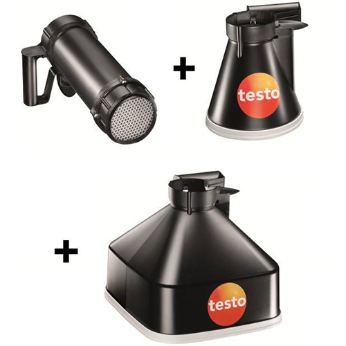 Выпрямитель потока можно использовать в сочетании набором с воронок testovent 417, анемометром testo 417 с крыльчаткой (Ø 100 мм), а также многофункциональными измерительными приборами testo 435 и testo 480, с зондом-крыльчаткой. Комплект состоит из выпрямителя потока и набора измерительных воронок testovent 417, который в свою очередь состоит из двух воронок разного размера.