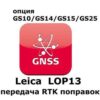 Опция LEICA LOP13 (GS10/GS15; передача данных RTK). Данная опция необходима для возможности передачи RTK поправок – опция активирует в приемнике возможность передачи RTK и DGPS сообщений во всех доступных для данного приемника форматах. Данная опция необходима для возможности передачи RTK поправок, данная лицензия может быть заказана только для GNSS приемников GS10/GS15/GS14/GS25.