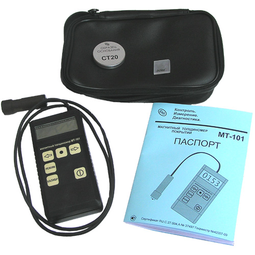 Магнитный толщиномер покрытий МТ-101М внесен в государственный реестр средств измерения под номером №42007-09, сертификат RU.C.27.004.A №37497.