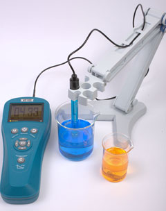 • Удобная и быстрая калибровка: значения рН стандартных буферных растворов уже внесены в память прибора, по окончании процесса калибровки на индикаторе отображается значение крутизны водородной характеристики электрода.