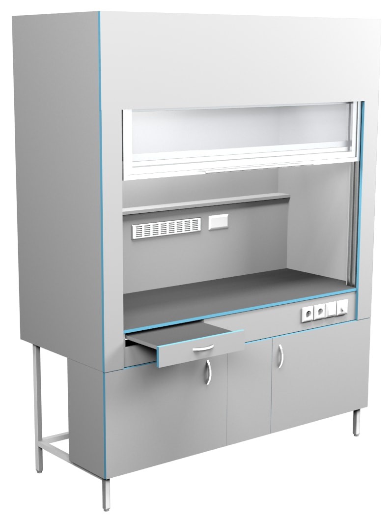 Шкаф вытяжной без сантехники ШВ НВК 1800 КГ (1800×716×2200). Описание: Вытяжные лабораторные шкафы применяются при работе с токсичными и вредными летучими материалами, с чистыми материалами, с растворением или разложением под температурной обработкой, при проведении анализа проб и многих других. Особенности: Дополнительная подсветка сбоку с плавной регулировкой Выдвижной столик Вытяжка из нижней тумбы позволяет хранить в ней реактивы Ударопрочный подъемный экран легко поднимается одной рукой Экран в поднятом состоянии не увеличивает высоту шкафа Внутри рабочей камеры полочка для хранения реактивов Две влагозащищенных розетки с крышкой внутри рабочей камеры Специальные доводчики в тумбе позволяют закрывать тумбу бесшумно По заказу столешницы могут быть выполнены из: химстойкого пластика керамогранита (плитка) полипропилена нержавеющей стали монолитной керамики эпоксидного керамзита