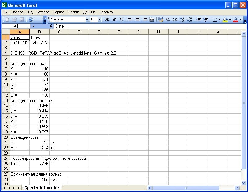 В приборе реализована уникальная возможность определения значений коррелированной цветовой температуры в режиме реального времени и вычислению точных значений координат цветности источника излучения по специальной программе, защищённой Свидетельством об официальной регистрации программы для ЭВМ №2003612396.