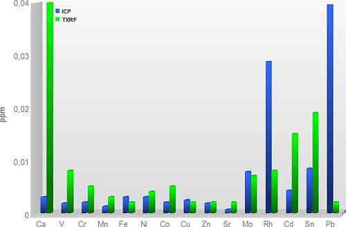 Сравнение пределов определения методов TXRF и ICP-MS.