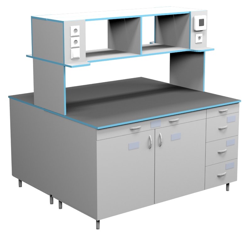 Стол островной для работы стоя СЛО НВК 1500 ЭПОК (1520*1520*1650) Описание: Столы островные лабораторные предназначены для комфортного проведения физических и химических исследований и работ стоя с применением лабораторных приборов, оборудования и инструментария в лабораториях различного типа (производственных, научных, учебных и т.п.). Особенности: Широкий верхний ящик позволяет удобно хранить холодильники и термометры. Ящик снабжен специальным противоскользящим ковриком. Специальные доводчики позволяют закрывать тумбу бесшумно Встроенная метеостанция Встроенный USB-разъем Полочка для телефона Выдвижной столик Встроенные файлы: удобно подписывать ящики и тумбы Выдвижные ящики направляющих обеспечивают плавное закрывание По заказу столешницы могут быть выполнены из: химстойкого пластика керамогранита (плитка) полипропилена нержавеющей стали монолитной керамики эпоксидного керамзита Дополнительные опции: Кран для газа Замок в нижней тумбе Полипропиленовые поддоны для хранения реактивов Кран холодной воды со сливной раковиной из полипропилена Автономная локальная вытяжка