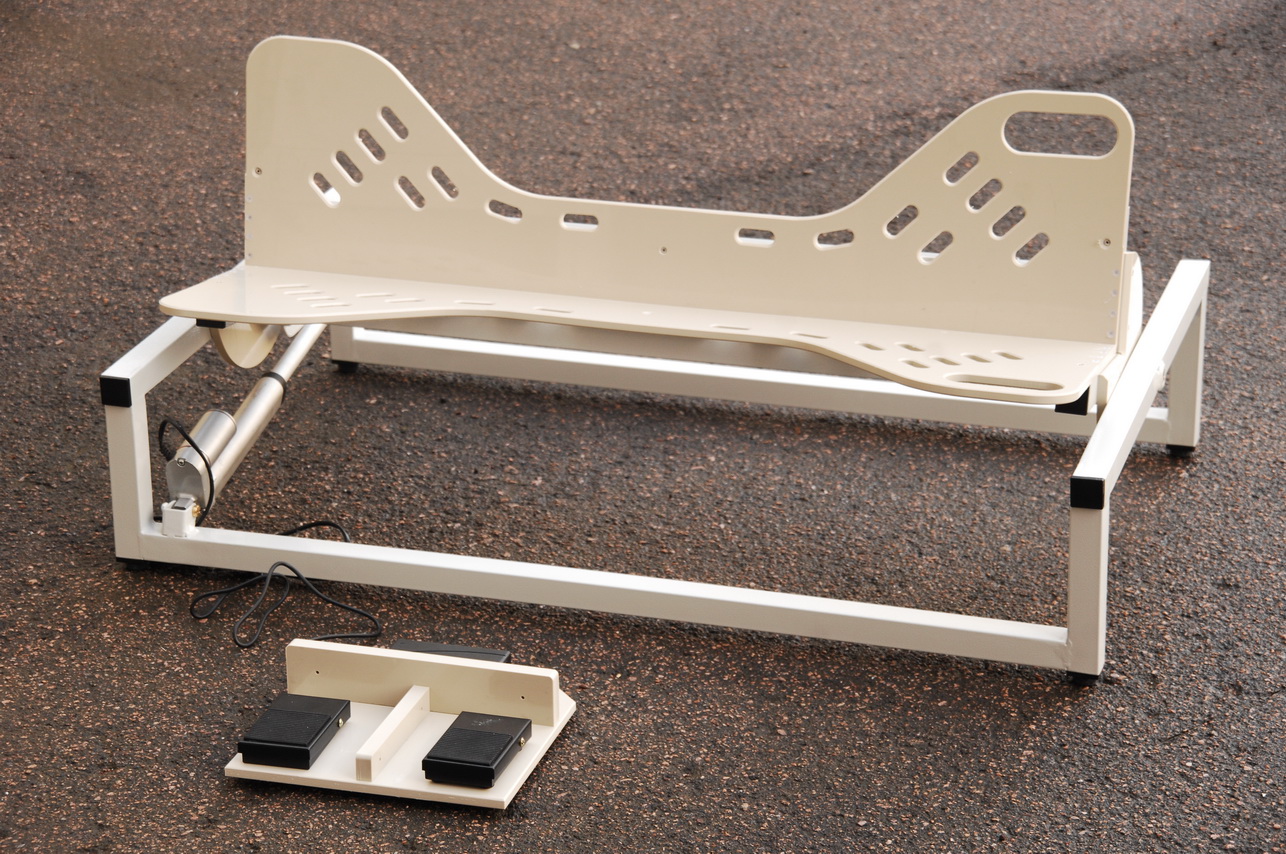 Регулировка положения пациента вдоль продольной оси тела позволяет получить доступ к органам брюшной полости, перемещая их для удобного доступа при диагностике и проведении оперативного вмешательства. Для удлинения ложемента, с целью разместить на СВЛ-2 более крупное животное, в комплектацию может входить удлинитель. При проведении артроскопических манипуляций с использованием артроскопа — к изделию комплектуется дистрактор конечностей. К этому станку ( накладке на стол) мы также выпускаем электропривод, для перекладывания фиксированного животного с боку на бок без усилий и фиксации в любом промежуточном положении. Управление приводом — от педали  (см. Фото 6, 7). Поверхности СВЛ-2 выполнены из химически стойкого полипропилена толщиной 10 мм и позволяют любые способы дезинфекции. Для фиксации животного в ложементе предусмотрено множество удобно расположенных отверстий.