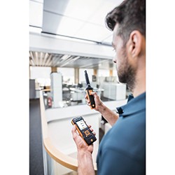 Избавьтесь от надоедливых кабелей при измерениях: используйте комплект для измерений в воздуховодах систем вентиляции и на вентиляционных решетках. В комплект входит прибор для измерения скорости и оценки качества воздуха в помещении testo 440 dP, включая сенсор дифференциального давления, два зонда-крыльчатки (Ø 100 мм и Ø 16 мм) и зонд влажности/температуры, которые подключаются к универсальной Bluetooth-рукоятке, также входящей в комплект. Для удобства измерений оба зонда-крыльчатки можно присоединить к входящей в комплект телескопической рукоятке. Вы можете удобно и безопасно перевозить всё оборудование в прочном кейсе.