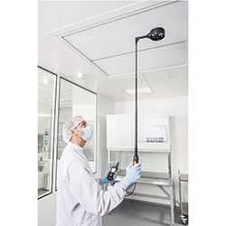 Для измерений на потолочных решетках: телескопическая рукоятка (длиной до 1 м) с хорошо читаемой шкалой и угловым кронштейном 90° легко присоединяется к зонду. Угловой кронштейн 90° позволяет правильно расположить зонд под потолком. Для высоких потолков вы можете использовать телескопический удлинитель, увеличивающий длину зонда до 2 метров (телескопическая рукоятка и телескопический удлинитель заказываются отдельно).