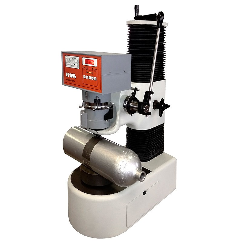 Предварительная и основная нагрузки производятся автоматически простым нажатием на рычаг. Образцы сложной формы зажимаются на предметном столе специальными зажимами. При отклонении образца, специальный запатентованный фирмой Ernst кожух индентора смещает образец должным образом, что обеспечивает точное и надежное измерение.