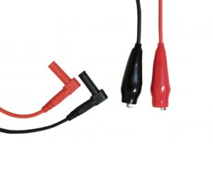 Измерительные щупы для мультиметров. Комплект состоит из красного и черного щупов, с изоляцией из ПВХ и угловыми укрытыми в корпус однополюсными штепселями (типа "банан") с заглушками.