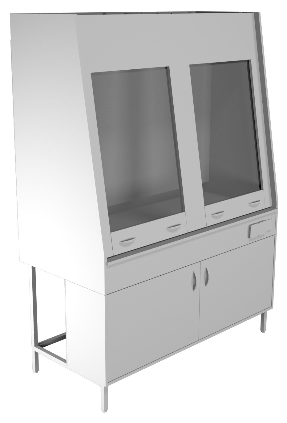 Вытяжной шкаф НВ-1800 ШВд-СПБ. Лабораторный вытяжной шкаф с двумя рамами. Нижняя тумба с полкой. Вытяжные лабораторные шкафы применяется при работе с токсичными и вредными летучими материалами, с чистыми материалами, с растворением или разложением под температурной обработкой, при проведении анализа проб и многих других.Покрытие столешницы вытяжного лабораторного шкафа  выполнена из слоистого пластика. Слоистый пластик обладает рядом преимуществ: устойчив к продолжительному воздействию кислот, щелочей и органических растворителей Ограничено стоек к воздействию высоких температур Возможные варианты различного исполнения столешниц, стойких к агрессивным материалам, делают вытяжной шкаф незаменимым для любой лаборатории. В комплектацию вытяжного шкафа входит: рабочая камера: подъемная рама с противовесами, покрытие столешницы — полипропилен, две зоны вытяжки светильник люминесцентный с одноклавишным выключателем цельносварной металлический каркас в порошковой окраске регулируемые по высоте опоры 2 электророзетки нижняя тумба с полкой Дополнительная комплектация (по запросу): Столешница из нержавеющей стали Взрывозащищенное исполнение Вентиляционный блок, гофротруба Вытяжка из тумбы.
