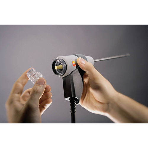 Модульный зонд отбора пробы, одобренный TÜV, длина 180 мм, оснащен системой легкой замены трубки зонда. Термопара NiCr-Ni, встроенная в зонд, позволяет измерять температуры до +500 °C. Канал дымового газа и канал температуры можно удобно подключить к прибору с помощью байонетного соединения. Кроме того, встроенный фильтр защищает прибор и его сенсоры от загрязнения.